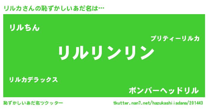 | ヘコむあだ名 | 『リルを』『リルカ(爆)』『酢こんぶ』 |