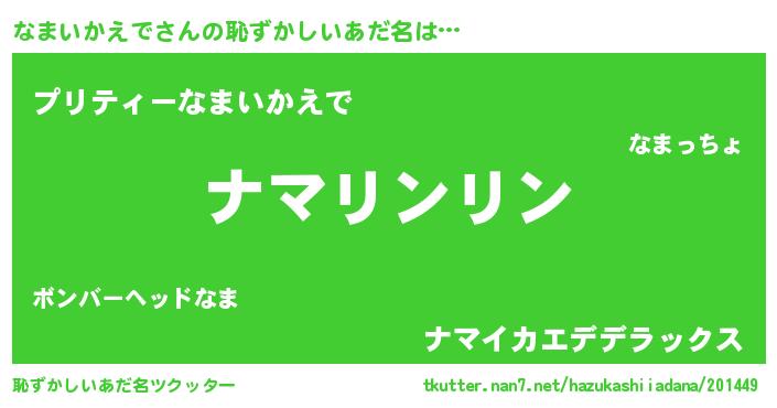 | ヒーロー風カッコイイあだ名 | 『暗黒騎士ナマ』『スーパーナマイカエデ』 |