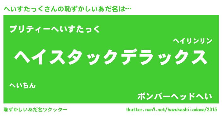| 意味不明あだ名 | 『自称へいすたっく』 |