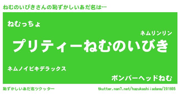 | ヘコむあだ名 | 『ねむもー』『なまこ酢』『ねむ太郎』 |