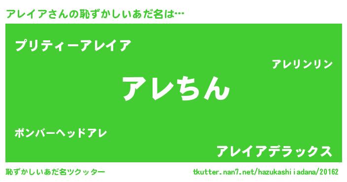 | 意味不明あだ名 | 『永久保存アレイア』『ペロリンアレイア』 |
