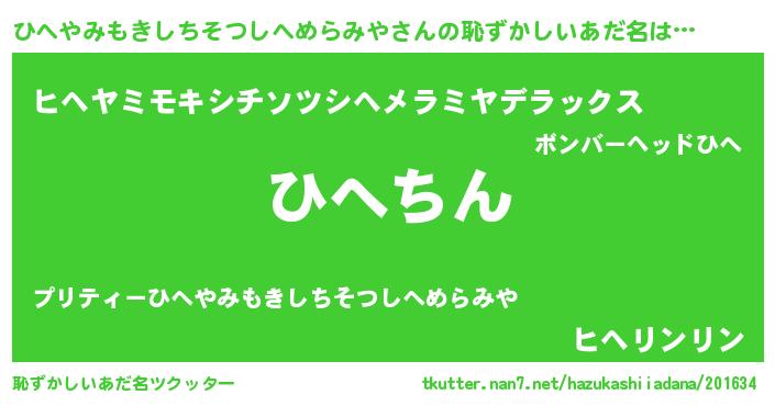 | ヘコむあだ名 | 『ひへやみもきしちそつしへめらみや(小並感)』 |