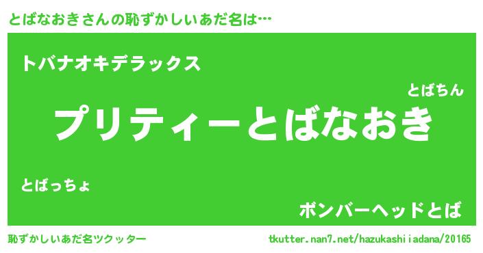 | ヘコむあだ名 | 『とばにー』『とばなおき(笑)』 |