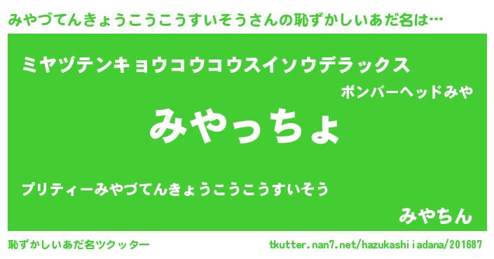 | ファンタジー風あだ名 | 『エターナルミヤヅテンキョウコウコウスイソウー』 |