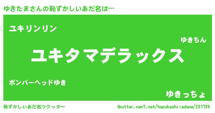 | 意味不明あだ名 | 『自称ゆきたま』『ゆきたまフォーエバー』 |