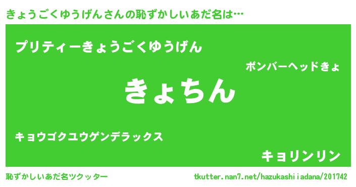 | ヘコむあだ名 | 『きょうごくゆうげん(笑)』『きょもー』 |
