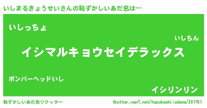 | 意味不明あだ名 | 『自称いしまるきょうせい』 |