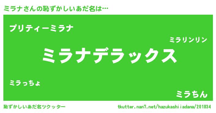 | ヘコむあだ名 | 『ミラふぇ~』『ミラナ(笑)』『豆乳』 |