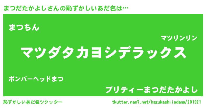 | 意味不明あだ名 | 『自称まつだたかよし』 |