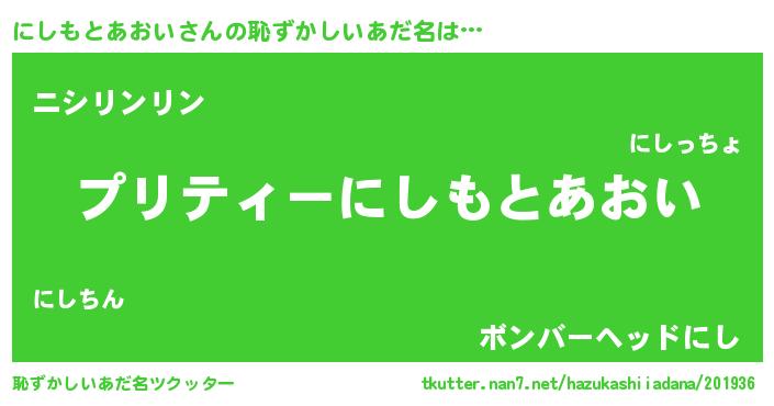 | 意味不明あだ名 | 『住所不定無職にしもとあおい(85歳)』 |