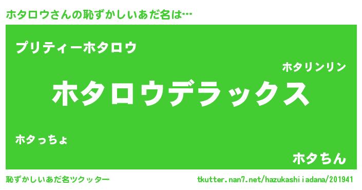 | ヘコむあだ名 | 『ホタっふぃ~』『ホタロウ(笑)』 |