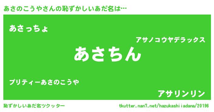 | 意味不明あだ名 | 『住所不定無職あさのこうや(95歳)』 |
