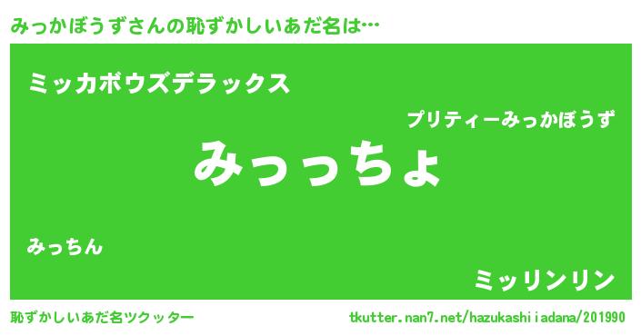 | 男性向けラノベタイトル風あだ名 | 『この素晴らしい世界にみっかぼうずを!』 |