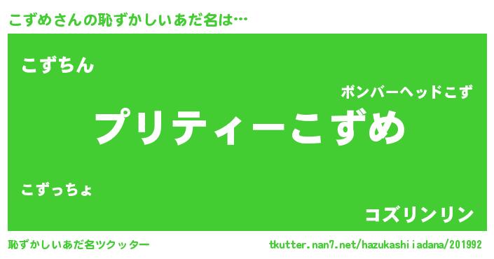 | ヘコむあだ名 | 『こずにゅー』『こずめ(苦笑)』 |