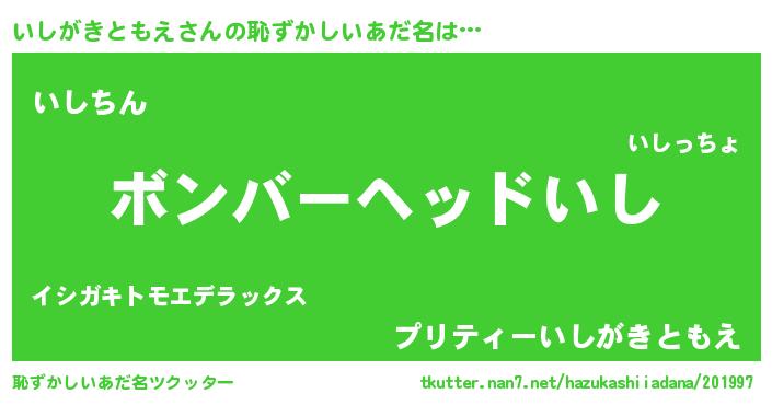 | ヘコむあだ名 | 『いしがきともえ(小並感)』『いしっふぃ~』 |