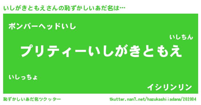 | 胡散臭い通販商品みたいなあだ名 | 『必ず成功する霊験あらたかなお札…その名も「いしがきともえ」』 |