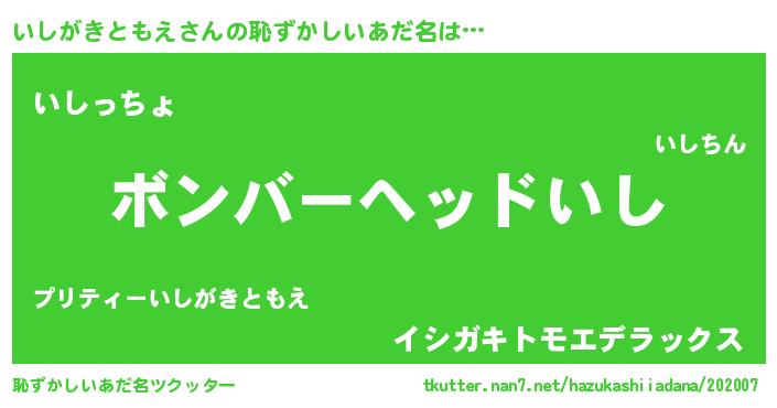 | 男性向けラノベタイトル風あだ名 | 『おまえをオタクにしてやるから、俺をいしがきともえにしてくれ! 』 |