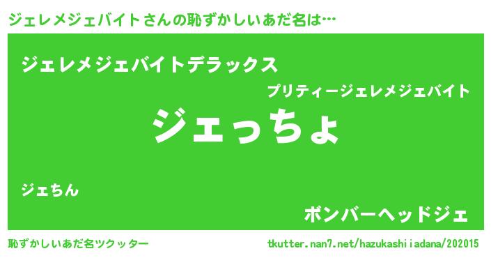 | 意味不明あだ名 | 『ジェレメジェバイトフォーエバー』 |