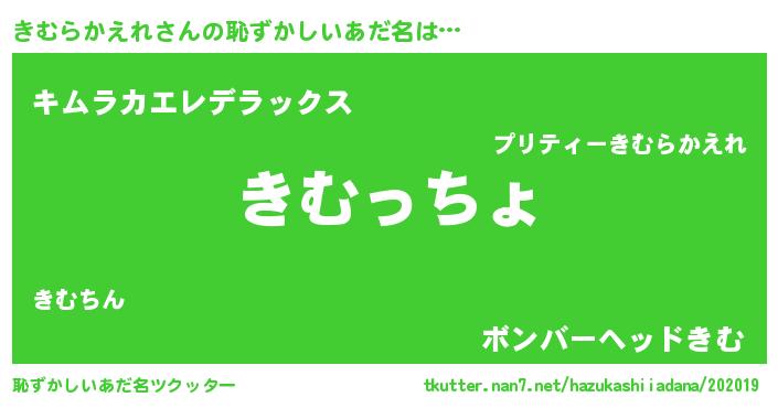 | 意味不明あだ名 | 『住所不定無職きむらかえれ(65歳)』 |