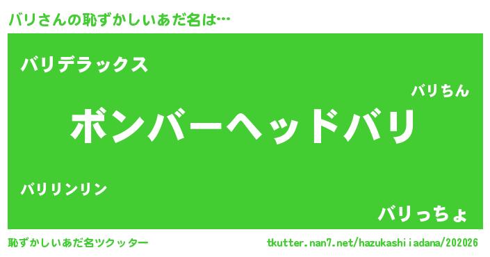| 男性向けラノベタイトル風あだ名 | 『ノーゲーム・ノーバリ』『緋弾のバリ』 |