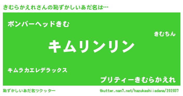 | 男性向けラノベタイトル風あだ名 | 『きむらかえれの嫁は女の子じゃないと思った?』 |