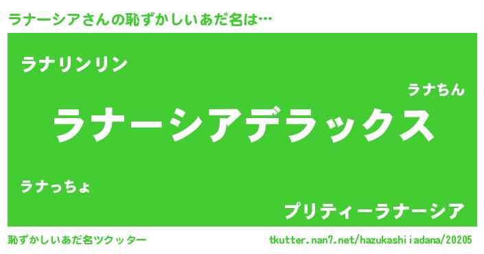 | 意味不明あだ名 | 『自称ラナーシア』『ペロリンラナーシア』 |