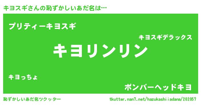 | ピコ太郎風あだ名 | 『キヨ八郎』『キコ六郎』『キキ太郎』 |