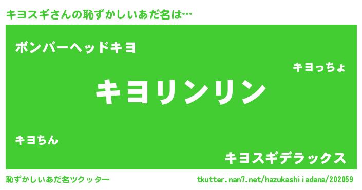 | 意味不明あだ名 | 『ニラ科キヨスギ属』『自称キヨスギ』 |