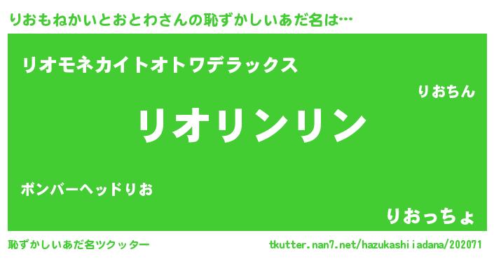| ヘコむあだ名 | 『りおっぺ』『なまこ酢』『りおにー』 |