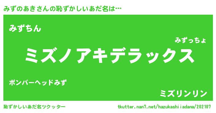 | ヘコむあだ名 | 『みずのあき(遠い目)』『みず太郎』 |