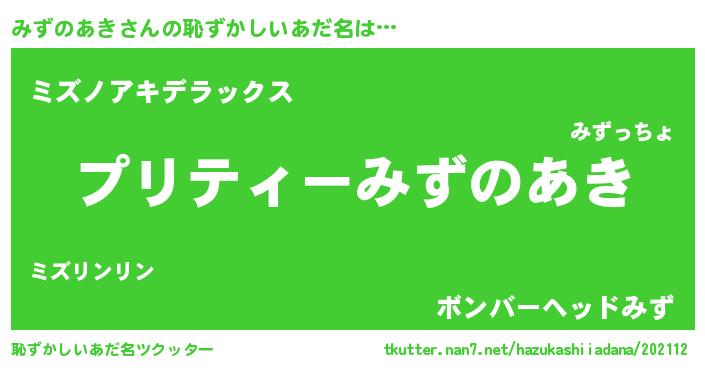 | 料理風あだ名 | 『みずのあきごはん』 |