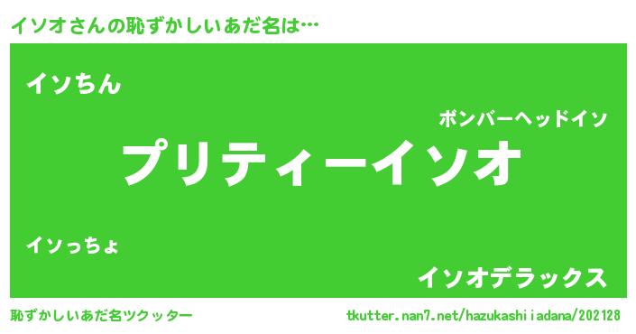 | 意味不明あだ名 | 『ペロリンイソオ』『永久保存イソオ』 |