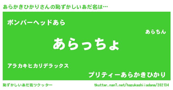 | 肩書あだ名 | 『あらかきひかり総理大臣』 |
