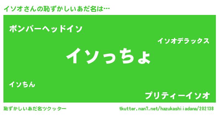| 男性向けラノベタイトル風あだ名 | 『やはりイソオの青春ラブコメはまちがっている 』 |
