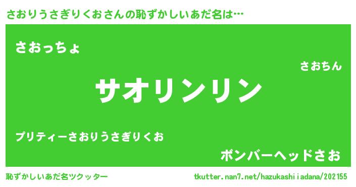 | 意味不明あだ名 | 『とにかく怪しいさおりうさぎりくお』 |