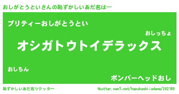 | ヒーロー風カッコイイあだ名 | 『最強戦士オシガトウトイ』 |
