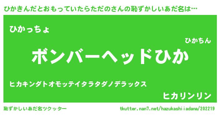 | ピコ太郎風あだ名 | 『ヒヒ太郎』『ピヒ八郎』『ヒカ二郎』 |