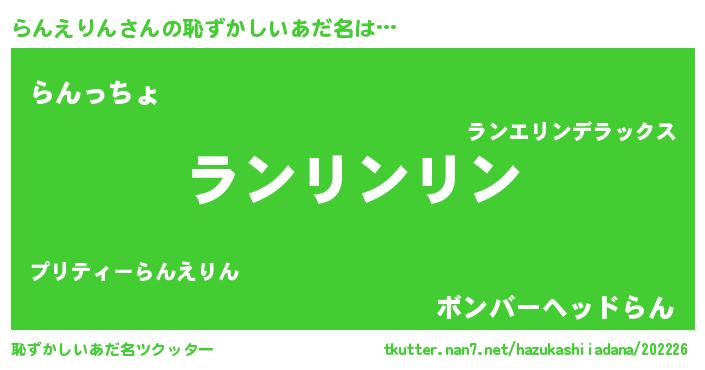 | 胡散臭い通販商品みたいなあだ名 | 『信頼と実績のサプリメント…その名も「らんえりん」』 |