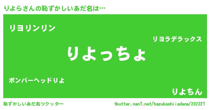 | ポケモン風あだ名 | 『リヨキング』『リヨラダネ』 |