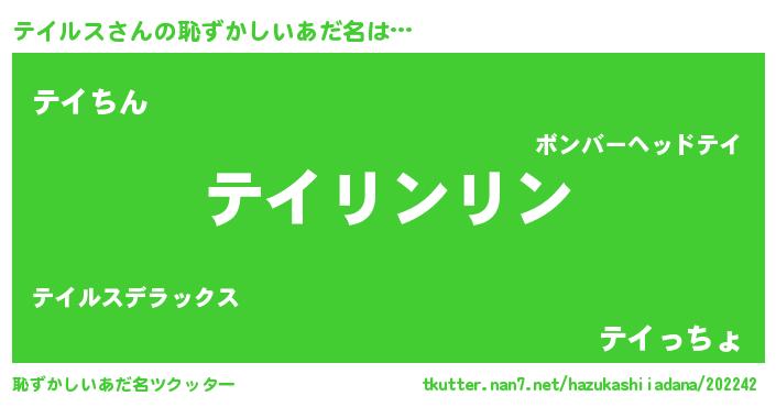 | 意味不明あだ名 | 『とにかく怪しいテイルス』 |