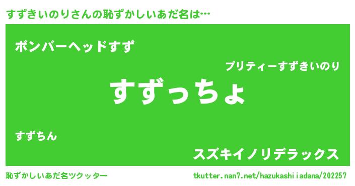 | 欧米人風あだ名 | 『ダレノガレすずきいのり』 |