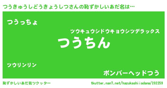 | 意味不明あだ名 | 『しいたけ科つうきゅうしどうきょうしつ属』 |