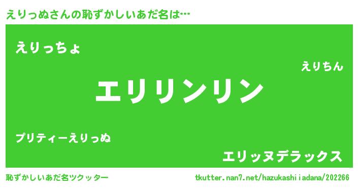 | 意味不明あだ名 | 『とにかく怪しいえりっぬ』 |