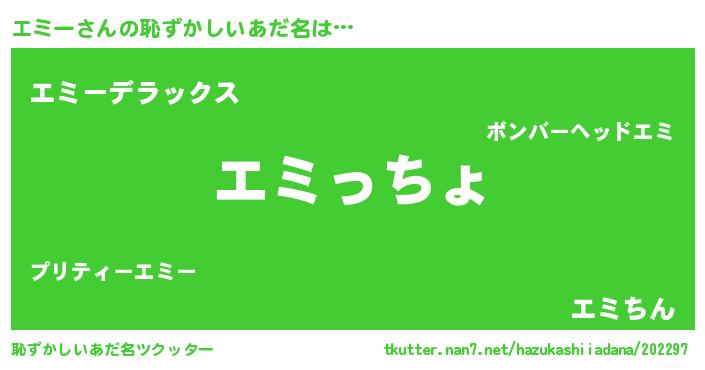 | 意味不明あだ名 | 『エミーフォーエバー』『自称エミー』 |