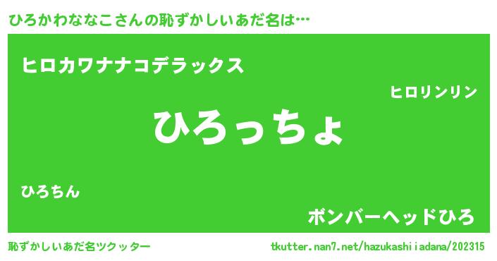 | 伝説のあだ名 | 『秘められし忍者ひろかわななこ』 |