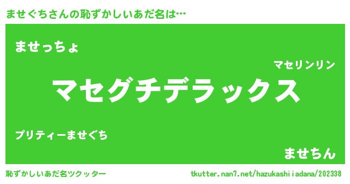 | 意味不明あだ名 | 『自称ませぐち』『ませぐちフォーエバー』 |