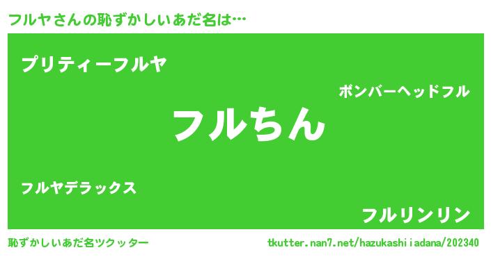 | ポケモン風あだ名 | 『ゼニフル』『フールイ』『フルゴンZ』 |
