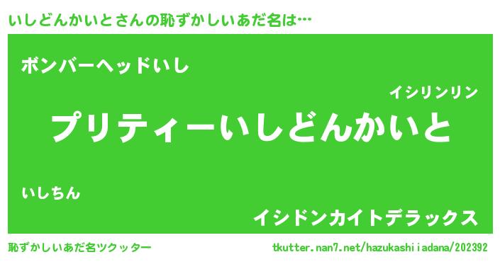 | 男性向けラノベタイトル風あだ名 | 『イシドンカイトアートオンライン』 |