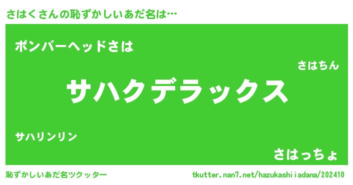 | ポケモン風あだ名 | 『サハセウス』『サックウザ』 |