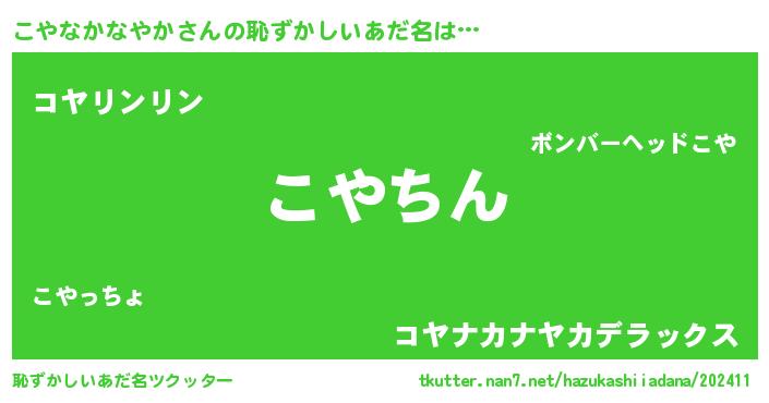 | ヒーロー風カッコイイあだ名 | 『ネオコヤナカナヤカ』『炎刃騎士コヤ』 |
